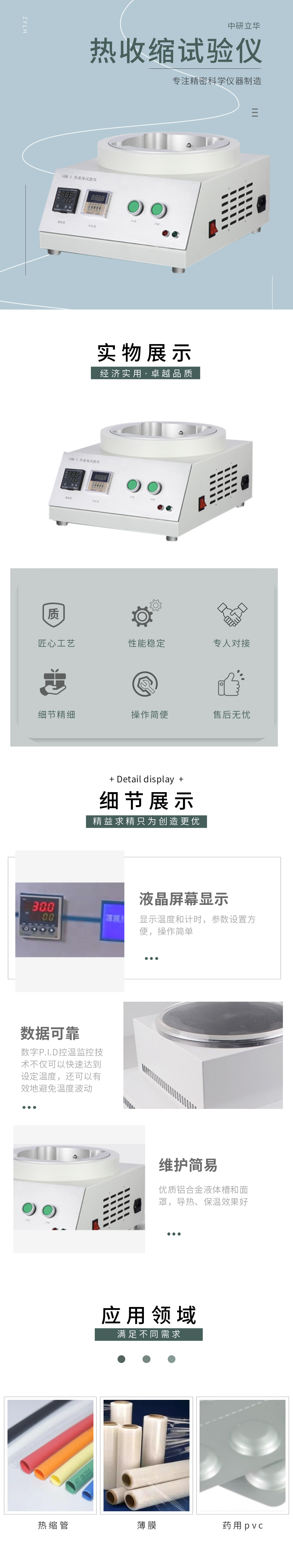 用途:可稱為熱縮性能測試儀、熱收縮測定儀、薄膜熱收縮率儀、熱縮率測試儀等 適用于各種薄膜、熱縮管、藥用PVC硬片、背板等材料在多種溫度下的液體介質(zhì)中進行熱收縮性能及尺寸穩(wěn)定性的測量