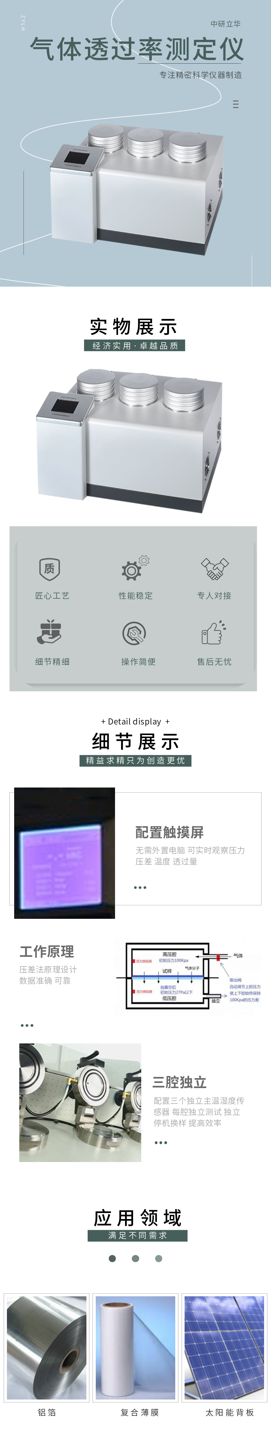 用途:測定薄膜或薄片材料的O2、CO2、N2等氣體的透過率(量)。適用于塑料薄膜、復(fù)合薄膜、鋁箔、鍍鋁膜等、各種片材、板材、橡膠、陶瓷等、包裝容器。廣泛應(yīng)用于質(zhì)檢、藥檢、科研、包裝等行業(yè)。