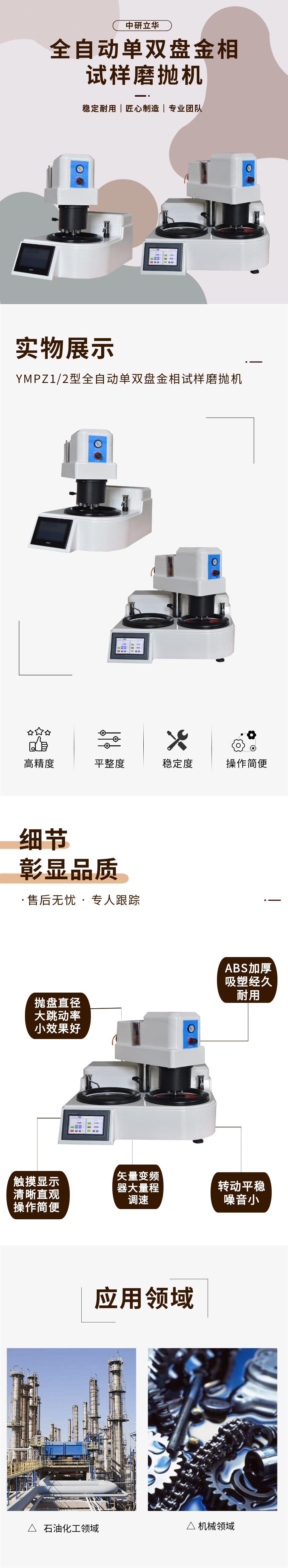 用途: 適用于金相試樣粗磨、精磨、精拋等各種金相加工全過程,可根據試樣條件自動調節對試樣進行加減壓式磨拋,高度自動化,人性化,極大程度減少人力投入,減少試樣磨拋過程中等各種問題