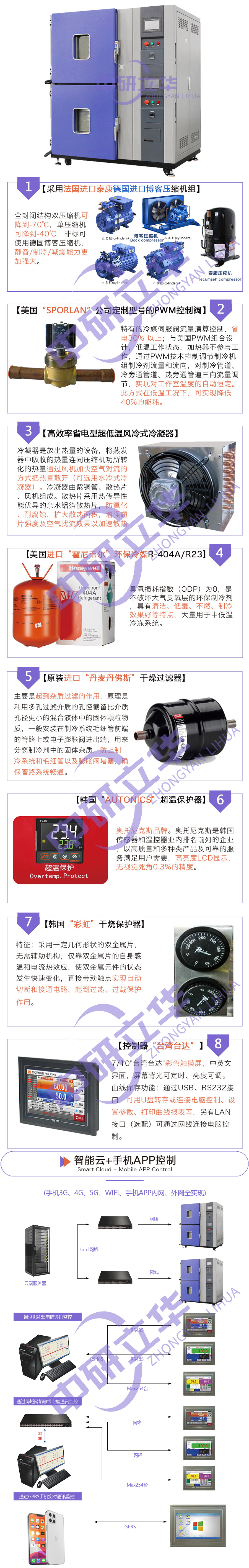 ●上下兩層,獨立控制,節(jié)省空間。巧妙的風(fēng)道結(jié)構(gòu),溫濕度偏差小,均勻度高,并具有防凝露功能。