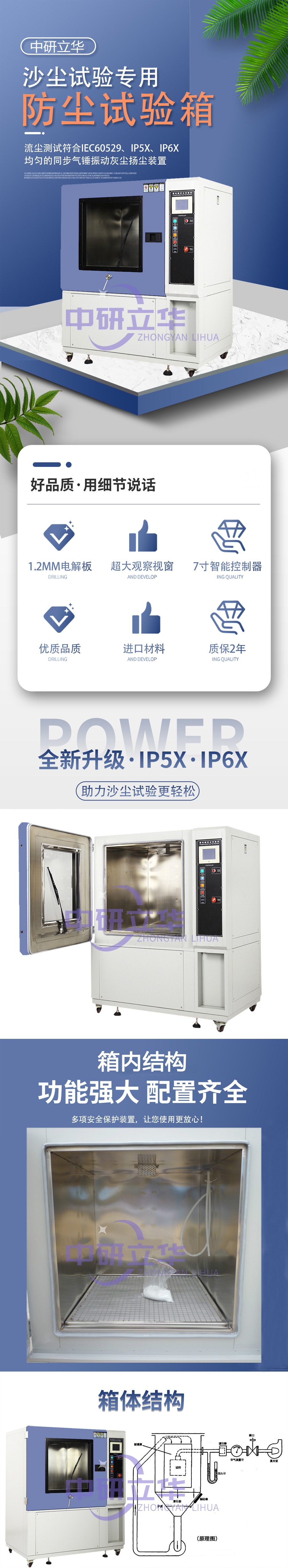 沙塵試驗箱學名為“砂塵試驗箱”,模擬自然界風沙氣候對產品的破壞性,適用于檢測產品的外殼密封性能,主要用于外殼防護等級標準中規定的IP5X和IP6X兩個等級的試驗。該設備適用于電工電子產品、汽車摩托車零部件、密封件在砂塵環境中防止砂塵進入密封件和外殼的試驗。以檢驗電子電工產品、汽車、摩托車零部件、密封件在砂塵環境中的使用、貯存、運輸的性能。